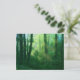 Les rayons du soleil matinal se répandent dans une forêt estivale d'une verdure éclatante, avec des arbres massifs recouverts de lierre et une épaisse couverture de sous-bois. Une photographie numériquement manipulée pour donner aux feuilles de la vigne, de la brume bleu-vert, des rayons dorés et des arbres verts printaniers une qualité de rêve.