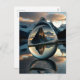 Carte postale unique de gouttelettes d'eau glacée avec de superbes reflets de montagne