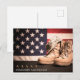 Journée du souvenir en souvenir et en l'honneur du drapeau américain et des bottes militaires, plaque d'identité camouflage étoiles et rayures carte postale.