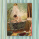 Cette carte postale française fantaisiste illustre une version victorienne d'une douche nuptiale. C'est une image parfaite pour les invitations, les affiches, les carnets, les revues, les affiches et la décoration des boutiques de mariée. La coordination du papier marbré accentue l'image chromolithographique. Ajoutez votre touche personnelle pour un message de douche nuptiale amusant et unique.