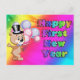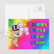 Un mignon petit ours en peluche portant un chapeau haut et une cravate arc porte des ballons et souhaite à bébé une bonne première année.