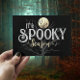Cette conception comporte l'expression "C'est la saison Éffrayante", ainsi que l'image d'un arbre nu et d'une pleine lune. Le dos de la carte comprend un simple "Happy Halloween" saluant avec une toile d'araignée dans le coin supérieur gauche. Toutes les polices, images et texte peuvent être customisées, ainsi que les couleurs arrière - plans.