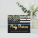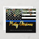 Envoyez des voeux de Noël Joyeux à vos amis, votre famille, vos collègues services de police et votre communauté avec cette carte de Noël Joyeuse Police de Ligne Bleue - American Flag aux couleurs du drapeau de la police, noir et bleu moderne avec des feuilles saints et des baies et élégant script d'or. Personnalisez avec votre message et nom de famille ou service de police. Ces cartes de Noël de la police sont parfaites pour les familles policières et policières ainsi que pour les services de police. DROIT D'AUTEUR © 2020 Judy Burrows, Black Dog Art - Tous droits réservés. Budget Police Noël Ligne Bleue Mince Police Application de la loi Carte postale Vacances