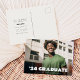 Célébrez votre réussite scolaire avec une carte postale élégante d'invitation à la remise des diplômes. L'avant présente une image grandeur nature avec un dégradé noir subtil en bas, offrant un espace élégant pour afficher l'expression '24 Graduate avec la place pour le nom des diplômés et l'école. Cette touche personnelle ajoute une touche unique à l'invitation. Au verso, il y a suffisamment de place pour envoyer des informations et des adresses à droite, tandis que sur le côté gauche, les détails de la fête sont bien présentés. Cette carte postale bien conçue allie fonctionnalité et esthétique moderne, ce qui en fait le moyen idéal pour les amis invitations et la famille à votre célébration spéciale.