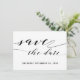 Carte postale d'accompagnement de mariage à calligraphie rustique avec enjolivures pour annoncer la date.