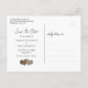 Carte postale de mariage avec photo et date de réservation en bois rustique et coeurs en toile de jute idéale pour un mariage à thème rustique. Personnalisez facilement avec votre photo et les détails de votre mariage.