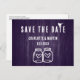 Carte postale de mariage minimaliste rustique avec calligraphie moderne idéale pour un mariage champêtre/rustique/barn dans un cadre violet.