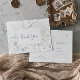 Cette verdure aérée et cette feuille d'or grâce à votre carte postale est parfaite pour un mariage moderne. L'élégant design botanique présente des eucalyptus aquarellés clairs et aquarellés, agrémentés de feuilles de parties scintillant en or blanc. Personnalisez le dos de la carte postale avec vos noms, votre adresse de retour et un message de remerciement. Sinon, laissez la section de modèle de message de remerciement vide pour écrire à la main une note personnalisée réfléchie sur chaque carte après leur arrivée. Ces cartes peuvent être utilisées pour un mariage, une douche nuptiale ou tout événement spécial.