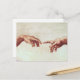 Carte postale de la main de Michelangelo. Chapelle Sixtine Fresco. L'une des scènes les plus emblématiques de l'art occidental. Ce détail de la création d'Adam de Michel-Ange montre que Dieu tend la main pour toucher ses doigts avec sa création. L'œuvre est chargée d'importations religieuses et culturelles et représente l'une des images les plus reconnues au monde. Un grand cadeau pour les fans de Michel-Ange, la chapelle Sixtine, l'art de la Renaissance et la peinture religieuse.