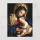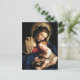 Il s'agit d'une belle représentation du 16ème siècle de la Vierge et de l'Enfant Christ. Marie est habillée de peignoirs bleus, rouges et dorés et s'assoit les yeux fermés en tenant un bébé Jésus dans ses bras. Cette Madone touchante et la carte enfant sont parfaites pour Noël et la fête des mères.
