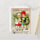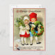 Cette carte postale vintage de Noël d'Ellen Clapsaddle présente deux enfants adorables à l'extérieur ; ils sont habillés chauds pour le temps hivernal. La fille porte un paquet de mistletoe et le garçon porte une couronne de saints et de baies. Un message en haut de la carte est : Un Joyeux Noël et un autre message en bas de la carte est : Tout Merriment et beaucoup Bonne Soeur, Un Noël lumineux Je vous souhaite, ma chérie.