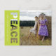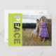 Ce design de carte postale de photographie moderne et frais, réalisé par red_dress, présente une photo horizontale complète montrant à travers le mot vertical "Paix". Écrits contre un arrière - plan vert sont les mots verticaux "Joyeux Noël" et "Bonne Année". L'exemple de photo utilisé est à des fins d'illustration seulement. LA PHOTO N'EST PAS INCLUSE.