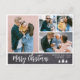 Budget Moderne, Rustique 4 Photo Collage Joyeux Brosse de Noël Script Gris Black Chalkboard Carte Postale Fête. Cette carte de vacances festive, minimaliste, de quatre (4) famille de photos comporte un joli collage photo et dit "Joyeux Noël" texte de salutation est écrit dans un texte de police de script de brosse lettré à la main. Jolie carte de voeux pour votre famille et vos amis en hiver.