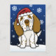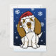Envoyez des cartes postales de Noël à tous vos amis amoureux des animaux cette année! Un mignon dessin animé d'espagne kawaii est posé sur la neige fraîchement tombée, portant un casquette Père Noël, tandis que des flocons de neige dérivent doucement autour de lui.