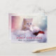 Carte postale de Noël avec la photo d'un chaton gingembre assis sur un chapeau de Père Noël blanc et rouge doux. Des lumières floues étincelantes bokeh arrière - plan. Nom personnalisé sur le devant, message personnalisé sur le dos.