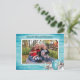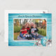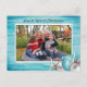 Grande carte postale de Noël en bleu marine avec un thème de vacances tropicale - OU facilement supprimer l'étoile de mer. Un simple salut sur le devant peut être customisé, avec du texte à l'envers pour un salut et une signature. Bois rustique en bleu tropical avec étoiles de mer blanches et ornements de boule font un cadre horizontal pour votre photo.