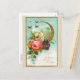 Une belle carte de Noël victorienne avec des roses et une nouvelle lune, réimprimée d'un original du XIXe siècle dans les archives privées de This Victorian Life. <www.ThisVictorianLife.com>