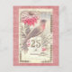 Cette belle carte postale vintage sur mesure est ornée d'un oiseau de neige de Noël en relief, perché sur le numéro 25, parmi les branches saintes et lierre, révélant la date du jour de Noël. Dans le coin supérieur gauche se trouve un beau poinsettia, au bas de la carte se trouvent les mots "Un Joyeux Noël". Cette image vintage est placée contre un magnifique arrière - plan de Noël rose ornemental pour compléter cette belle carte postale.