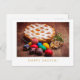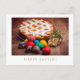 Carte postale de Pâques avec tarte au fromage italien pastiera et oeufs colorés.