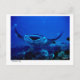 Carte postale comportant la photo sous-marine d'un rayon de manta