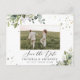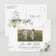 Carte postale de sauvegarde avec photo. Cette carte postale de sauvegarde élégante et stylée présente une superbe verdure aquarelle peinte à la main. Trouvez des articles assortis dans la collection Watercolor Eucalyptus Floral Greenery_HB1.