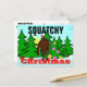 Carte postale de Squatch de Noël de Squatchy. Stupéfiez vos amis et famille avec ce Sasquatch hilare frais Bigfoot avec le casquette de père Noël et l'arbre de Noël rouges dans la carte postale en bois avec le texte "Noël de Squatchy". Cette carte postale humoristique fraîche de squatch est entièrement personnalisable, ajoute vos textes et images ! Une carte drôle de Sasquatch de Joyeux Noël pour des amis ou des membres de la famille !