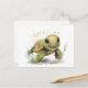 Une carte postale très mignonne avec l'illustration d'une tortue souriante et joyeuse.