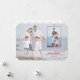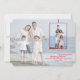 Un design tendance avec une photo de fond sous un voile de 40 % de transparence et une superposition d'une fenêtre de photo rouge avec votre photo de 4"x6". Une bannière opaque en bas contient votre message de vacances. La fenêtre de photo rouge et la bannière opaque peuvent être déplacées vers n'importe quel emplacement, agrandies ou réduites (+-) pour s'adapter à votre photo de fond. Le dos de la carte présente un motif de boîtes noir, blanc et rouge. (FP)