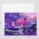 Deux filles naviguent dans un bateau magique sur une rivière noire dans une forêt féerique au-delà du château et du village sur le rivage. Ils sont fatigués après les aventures et ont un petit repos. Des créatures magiques se cachent derrière de grands arbres au crépuscule de la soirée. Oeuvre d'Imaginaire faite à partir de dessin à l'encre puis numériquement peint.