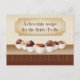 Si la mariée ADORE le chocolat, faites de la douche nuptiale une douche nuptiale unique en lui jetant une douche nuptiale sur le thème "Mort au chocolat". Une rangée de délicieux bons au chocolat s'installe sur un comptoir sous une plaque qui porte un message customisé sur cette carte unique de la douche nuptiale au chocolat. L'inverse révèle le même arrière - plan de tonalité rayé avec des zones à écrire dans une recette préférée avec du chocolat juste pour la future mariée. Disponible avec des produits correspondants.