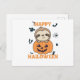 Le paresseux est assis dans un citrouille. Les fentes dans un fantôme citrouille sont de mignons animaux pour Halloween. Citrouilles en orange avec des animaux amusants pour les enfants.