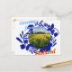 Delft Blue Motif et Tulip Bulb Fields Salutations de Holland Postcard. Vieux style Hollandais Delft Blue (Delfts Blauw) motif avec photo Holland entièrement personnalisable (changer et télécharger votre propre image!) paysage de fleurs de tulipe jaune avec moulin et texte entièrement personnalisable "Greutages de Holland" carte postale souvenir. Ce beau cadeau de carte postale Holland tulips personnel est entièrement personnalisable, ajoutez votre image et votre texte!