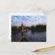 La carte postale de Okavango Delta Nature Photo présente une belle photo d'une balade dans un mokoro, un canoë creusé, dans le delta de l'Okavango au Botswana en Afrique, prise par Kurt Keller avec un appareil photo de 35 mm, pendant un safari africain au Botswana. Un homme à mât se tient dans le mokoro devant le propulser à travers les eaux peu profondes du delta en se tenant dans l'arrière et en poussant avec un poteau. Cette superbe photo a été prise en 2000, la première année après 10 ans de sécheresse. Le camp où nous sommes restés avait donné des tours en jeep les années précédentes au même endroit que nous sommes maintenant en canoë. Le delta de l'Okavango, ou marécage d'Okavango, est le plus grand delta intérieur du monde. Il se forme là où la rivière Okavango se jette dans un marécage dans un bassin du désert du Kalahari, où la majeure partie de l'eau est perdue par évaporation et transpiration au lieu de s'écouler dans la mer.