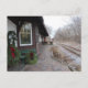 Scène de Watertown, WI Chicago et Northwestern Depot à l'heure de Noël. Pas encore de neige à l'époque, mais beaucoup de grandes couronnes et décorations sur le bâtiment ainsi que l'ancienne soute à bagages à l'extérieur par les voies ferrées.