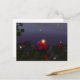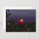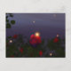 Au crépuscule d'une nuit d'été, des lucioles flottent et brillent sur un jardin rose rempli de roses rouges vibrantes.