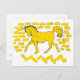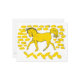 Cheval jaune en peinture et stylo et encre devant un design en brique. Merci d'avoir vu mon magasin !