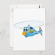 Un hélicoptère de dessin animé bleu qui vole dans le ciel amical.