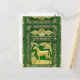 Photographie d'une caravane traditionnelle tzigane peinte détail de wagon avec un cheval d'or sur un arrière - plan peint en vert, photographié à la foire des chevaux Appleby, à Cumbria, Angleterre, où se réunissent chaque année des tziganes.