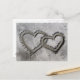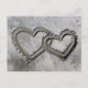 Photo en noir et blanc de deux coeurs retracés dans le sable
