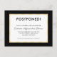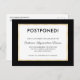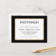 Vous avez besoin de reporter ou d'annuler votre événement? Envoyez cette carte postale pour informer vos invités du changement de plan. Le design simple est accentué par une bordure noire et or.