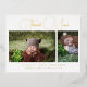 Merci photo bébé Script moderne Modèle de naissance Faire-part Foil Postcard présente deux de vos photos préférées de votre nouveau-né garçon ou petite fille. L'avant présente le "Merci" en écriture calligraphie en feuille d'or. Vous trouverez ci-dessous des informations supplémentaires telles que le nom du nouveau-né et les informations sur la naissance. Au verso, ajoutez votre message personnalisé de remerciements des parents et de la famille du nouveau-né. CONSEIL PHOTO : centrez vos photos avant de les télécharger sur Zazzle. Conçu par ©Evco Studio www.zazzle.com/store/evcostudio