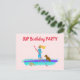 Carte postale d'invitation pour l'anniversaire d'une adolescente avec un thème de paddle debout. La conception illustrée montre une fille pagayant sur sa planche avec son chien à bord, tandis qu'une tortue de mer nage à côté. Personnalisez le texte du modèle sur le recto et le verso pour une fête de rassemblement. L'adresse de messagerie peut être ajoutée séparément à chaque invitation de fête.