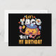 La conception comprend un taco avec un chapeau mexicain et des livres et lit : Discutons Taco De Mon Anniversaire. Parfait le 5 mai Cinco De Mayo pour une fête d'anniversaire sur le thème du Mexique.