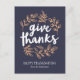 Design élégant et rustique d'action de grâce avec des fleurs dessinées à la main et les mots "rendre grâce"