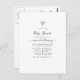 Simple invitation de carte postale baby shower virtuelle en noir et blanc avec des icônes de médias sociaux personnalisables à vos spécificités.