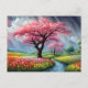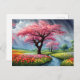 Un paysage vibrant se déploie avec des arbres de printemps dans une scène orageuse avec des cieux nuageux qui pleuvent. Un sentier humide à travers les champs fleuris de fleurs printanières vous invitation à faire une promenade.