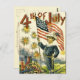 Image de carte postale vintage du jeune garçon avec drapeau américain et feux d'artifice. Texte : "4 juillet".