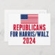 Carte postale républicaine pour Harris Walz avec le drapeau américain en rouge, blanc et bleu. Les conservateurs qui votent pour Kamala Harris et Tim Walz pour le poste de président et vice-président aux élections de 2024.