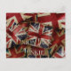 Drapeau Union Jack rétro amusant, usé et sale, avec des mots 'union jack junkie' dessus.