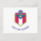 Carte postale avec le drapeau d'Austin, Texas. Un drapeau blanc avec les armoiries de la ville au centre